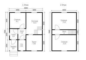 | Внешние стены | Стойки каркаса из строганой доски камерной сушки 45х145/45х195+/-5 мм. с шагом 590 мм. Верхняя двойная и нижняя обвязки из строганой доски камерной сушки 45х145/45х195+/-5 мм. Разгрузочный ригель из строганой доски 45х145+/-5 мм. Укосины из строганой доски 20х95 мм. | |